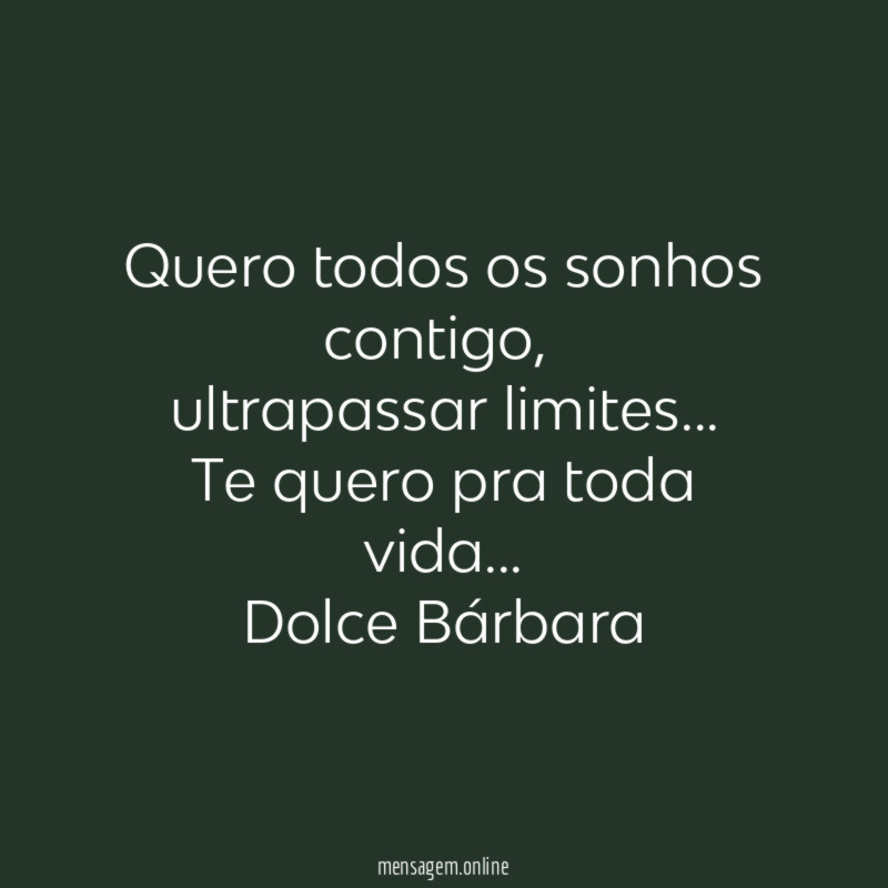 Quero todos os sonhos contigo, ultrapassar limites… Te quero pra toda vida…