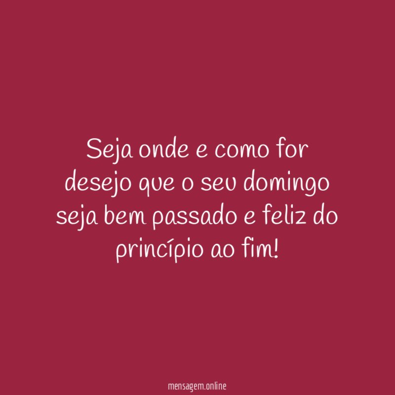 Desejo um domingo abençoado, com muito descanso, livre de estresse e de pensamentos sobre o dia de amanhã!