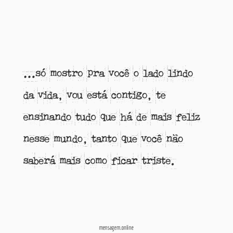 …só mostro pra você o lado lindo da vida, vou está contigo, te ensinando tudo que há de mais feliz nesse mundo, tanto que você não saberá mais como ficar triste.