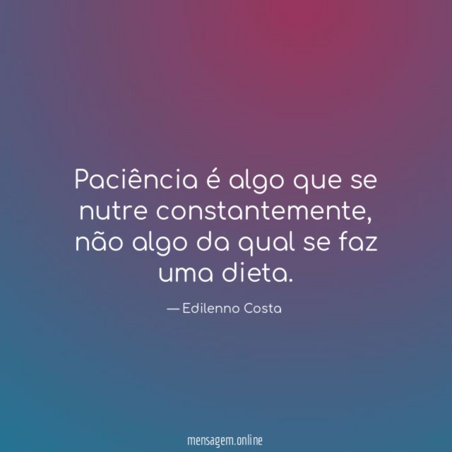 Paciência é algo que se nutre constantemente, não algo da qual se faz uma dieta.