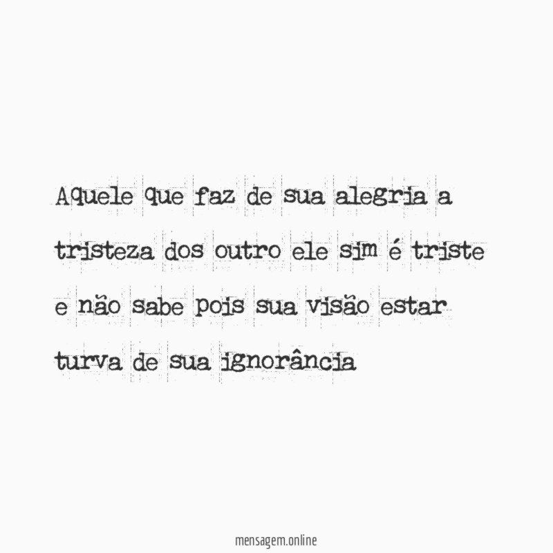 “Aquele que faz de sua alegria a tristeza dos outro ele sim é triste e não sabe pois sua visão estar turva de sua ignorância ”