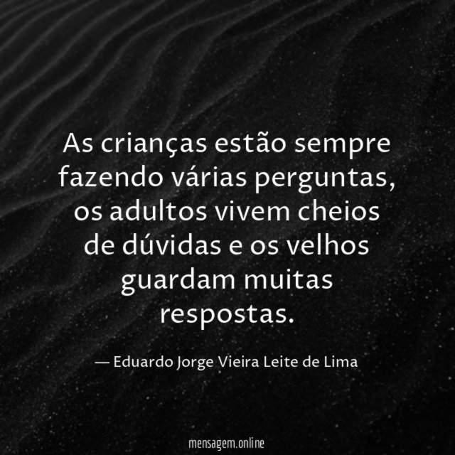 As crianças estão sempre fazendo várias perguntas, os adultos vivem cheios de dúvidas e os velhos guardam muitas respostas.