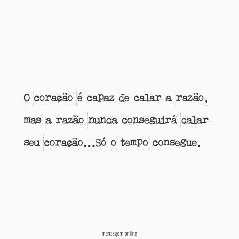 O coração é capaz de calar a razão, mas a razão nunca conseguirá calar seu coração…Só o tempo consegue.