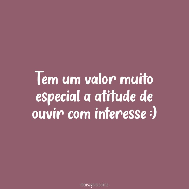 Tem um valor muito especial a atitude de ouvir com interesse :)