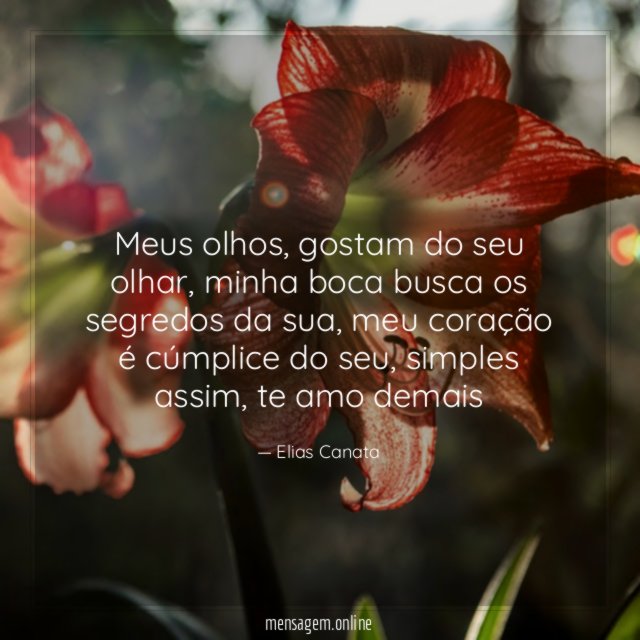 Meus olhos, gostam do seu olhar, minha boca busca os segredos da sua, meu coração é cúmplice do seu, simples assim, te amo demais
