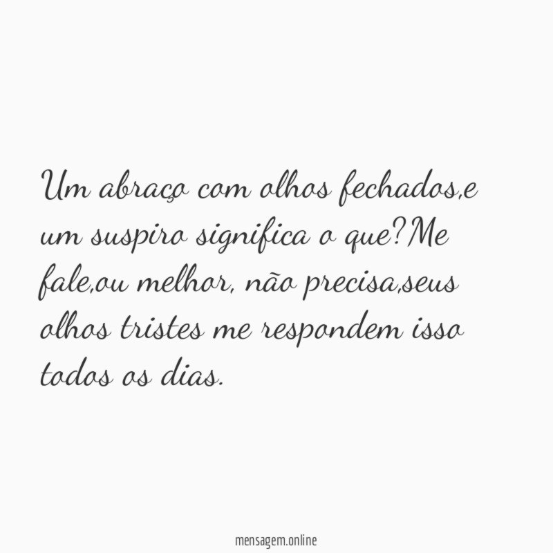 Um abraço com olhos fechados, e um suspiro significa o que?Me fale, ou melhor, não precisa, seus olhos tristes me respondem isso todos os dias.