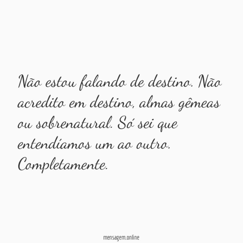 Não estou falando de destino. Não acredito em destino, almas gêmeas ou sobrenatural. Só sei que entendíamos um ao outro. Completamente.