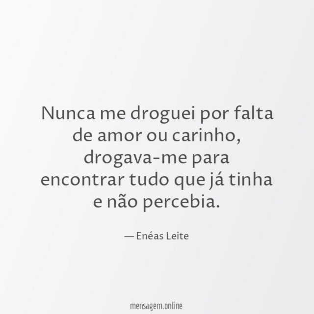 Nunca me droguei por falta de amor ou carinho, drogava-me para encontrar tudo que já tinha e não percebia.