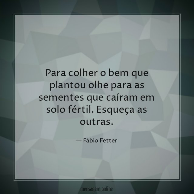 Para colher o bem que plantou olhe para as sementes que caíram em solo fértil. Esqueça as outras.
