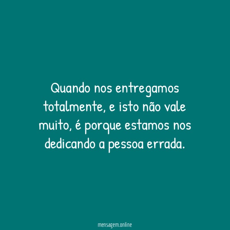 Quando nos entregamos totalmente, e isto não vale muito, é porque estamos nos dedicando a pessoa errada.