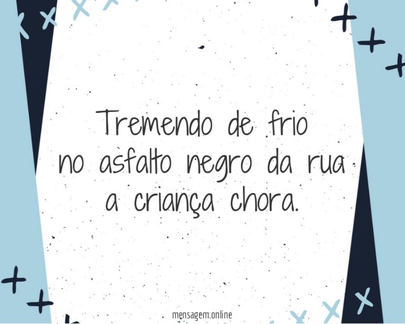 Tremendo de frio no asfalto negro da rua a criança chora.