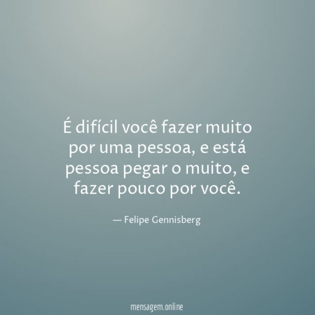 É difícil você fazer muito por uma pessoa, e está pessoa pegar o muito, e fazer pouco por você.