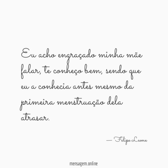 Eu acho engraçado minha mãe falar, te conheço bem, sendo que eu a conhecia antes mesmo da primeira menstruação dela atrasar.