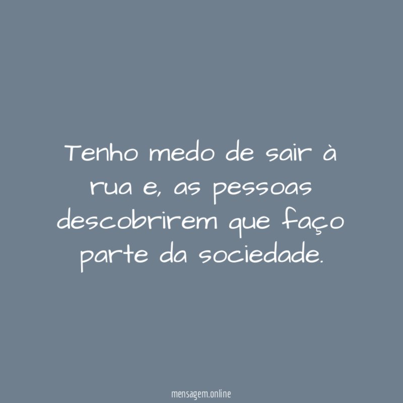Tenho medo de sair à rua e, as pessoas descobrirem que faço parte da sociedade.