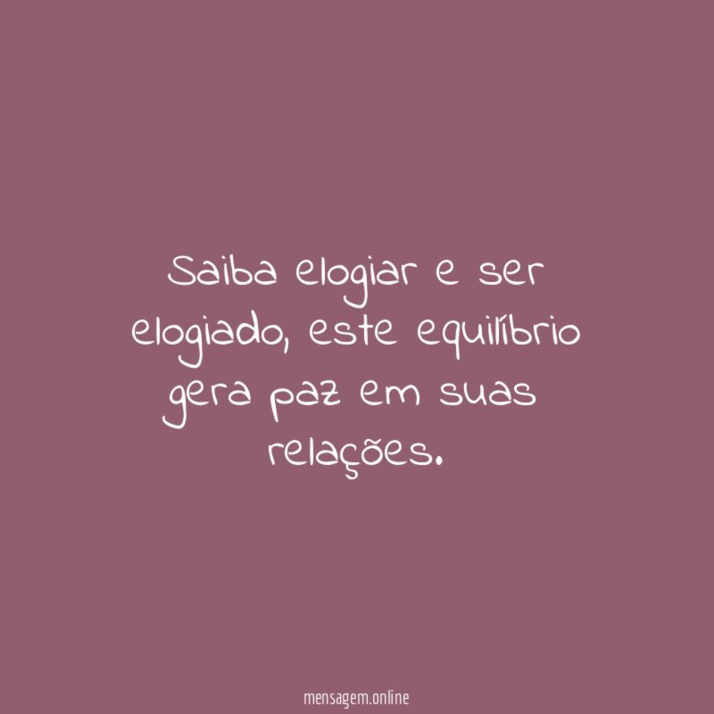 Saiba elogiar e ser elogiado, este equilíbrio gera paz em suas relações.