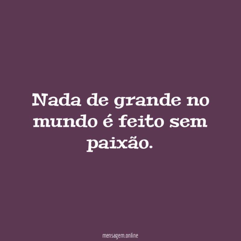 Nada de grande no mundo é feito sem paixão.