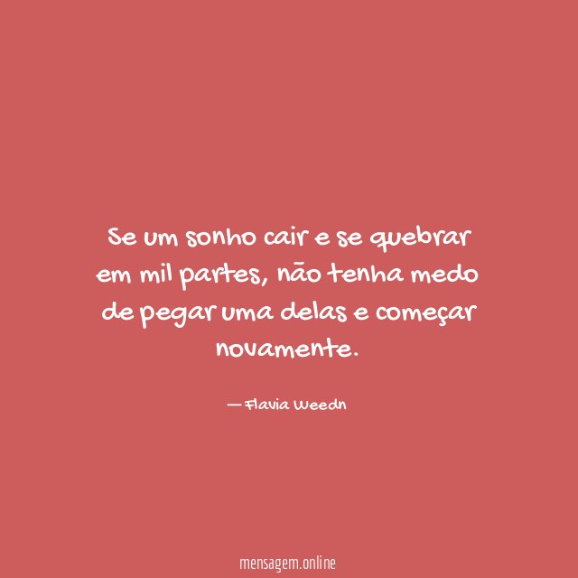 Se um sonho cair e se quebrar em mil partes, não tenha medo de pegar uma delas e começar novamente.