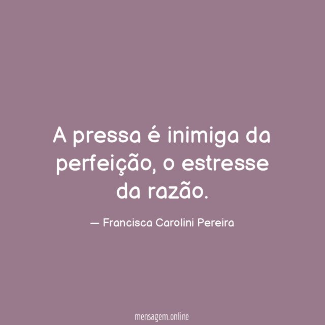 A pressa é inimiga da perfeição, o estresse da razão.
