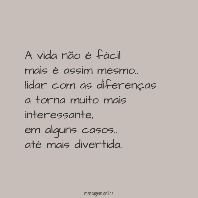 A vida não é fácil mais é assim mesmo