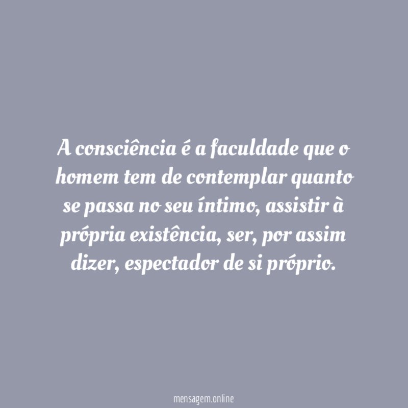 A consciência é a faculdade que o homem tem de contemplar quanto se passa no seu íntimo, assistir à própria existência, ser, por assim dizer, espectador de si próprio.