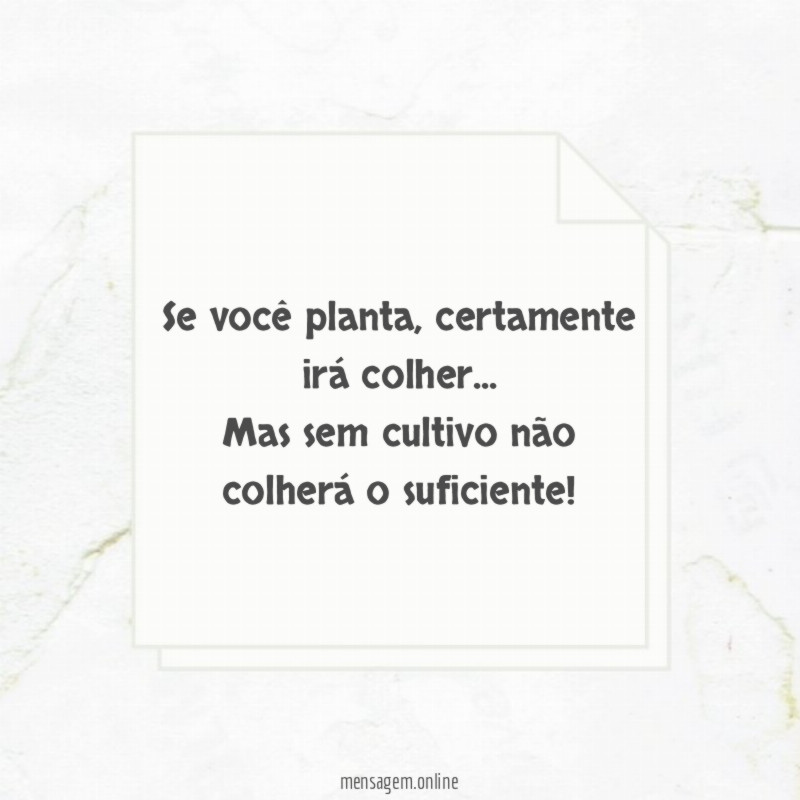 Se você planta, certamente irá colher… Mas sem cultivo não colherá o suficiente!
