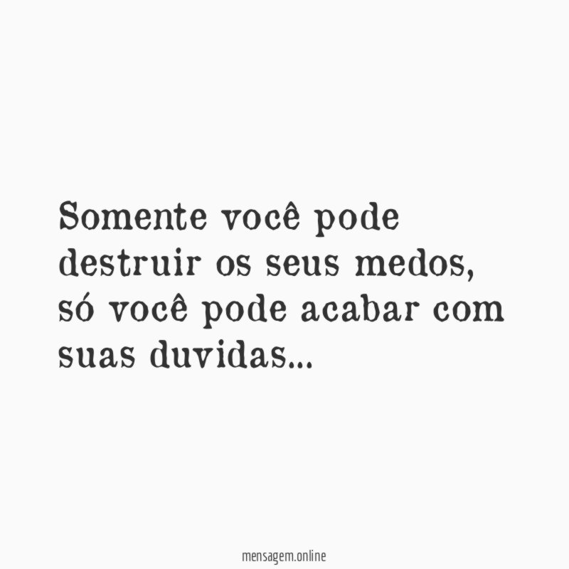 Somente você pode destruir os teus medos, só você pode acabar com tuas duvidas, somente você pode dar um novo começo a tua vida…