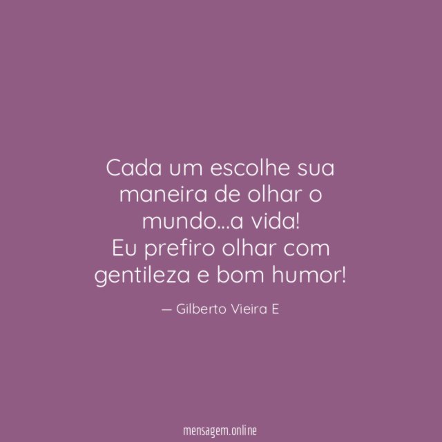 Cada um escolhe sua maneira de olhar o mundo…a vida! Eu prefiro olhar com gentileza e bom humor!