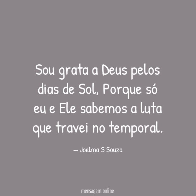 Querido Deus sou grata pela oportunidade de viver mais um dia