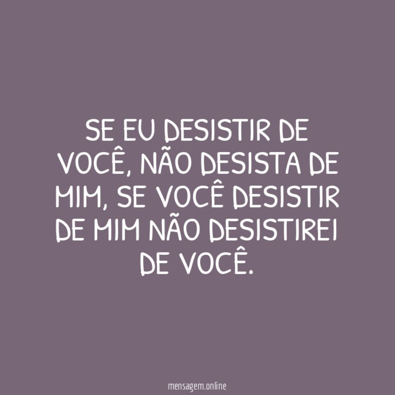 Se eu desistir de você, não desista de mim, se você desistir de mim não desistirei de você.