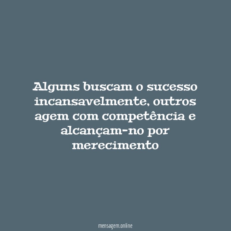Alguns buscam o sucesso incansavelmente, outros agem com competência e alcançam-no por merecimento