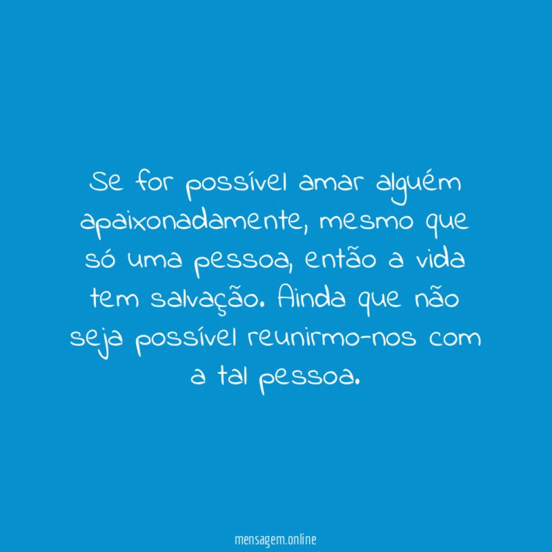 "Se for possível amar alguém apaixonadamente, mesmo que só uma pessoa, então a vida tem salvação. Ainda que não seja possível reunirmo-nos com a tal pessoa."