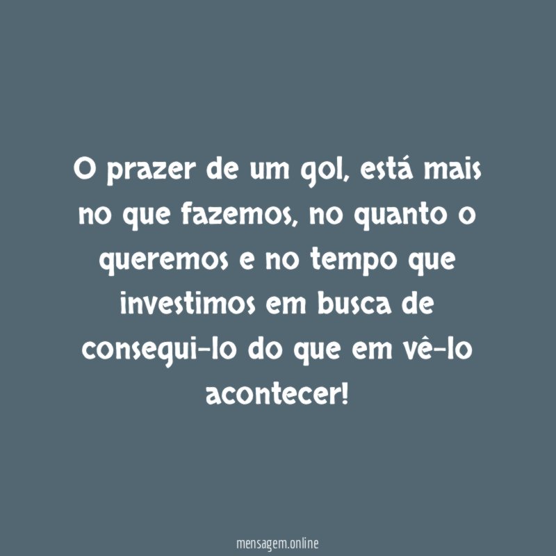O prazer de um gol, está mais no que fazemos, no quanto o queremos e no tempo que investimos em busca de consegui-lo do que em vê-lo acontecer!