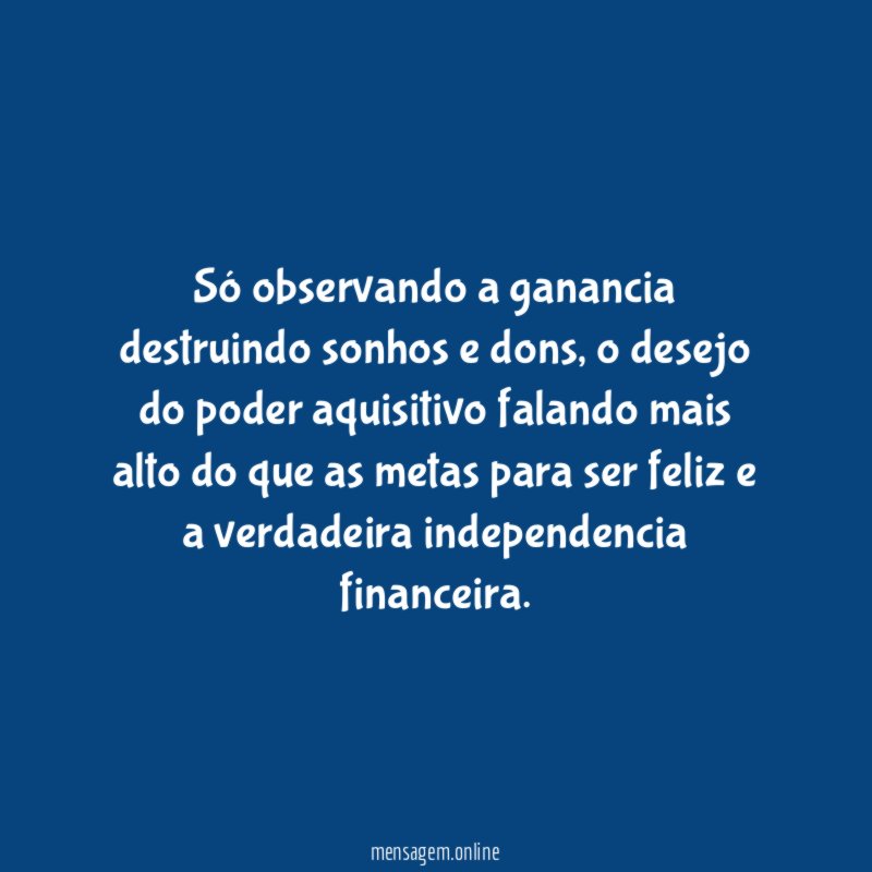 Só observando a ganancia destruindo sonhos e dons, o desejo do poder aquisitivo falando mais alto do que as metas para ser feliz e a verdadeira independencia financeira.