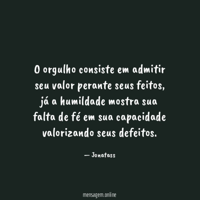 O orgulho consiste em admitir seu valor perante seus feitos, já a humildade mostra sua falta de fé em sua capacidade valorizando seus defeitos.
