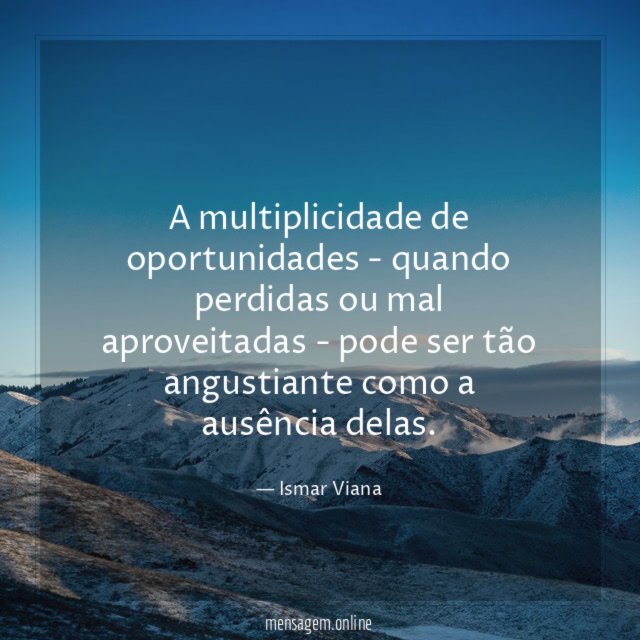 A multiplicidade de oportunidades - quando perdidas ou mal aproveitadas - pode ser tão angustiante como a ausência delas.