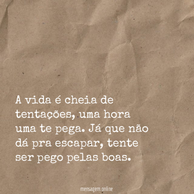 A vida é cheia de tentações, uma hora uma te pega. Já que não dá pra escapar, tente ser pego pelas boas.