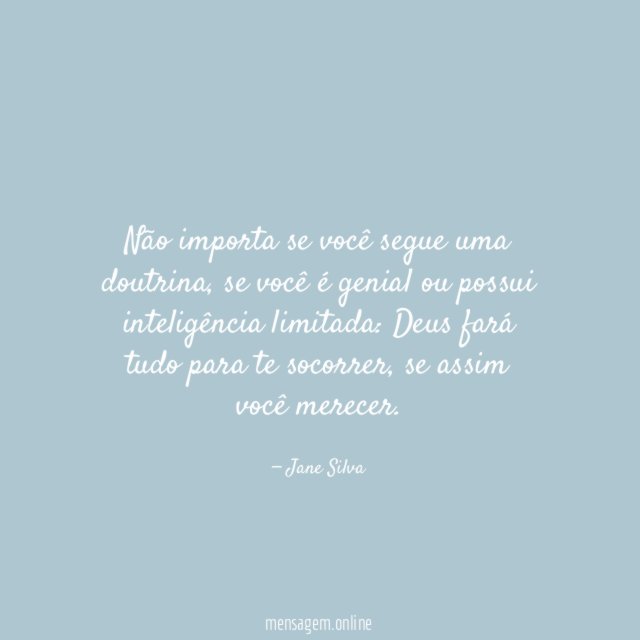 Não importa se você segue uma doutrina, se você é genial ou possui inteligência limitada: Deus fará tudo para te socorrer, se assim você merecer.