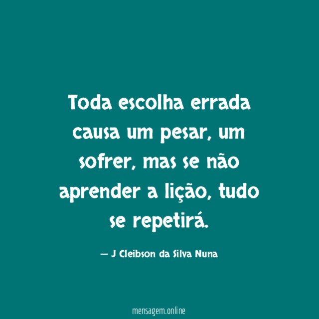 Toda escolha errada causa um pesar, um sofrer, mas se não aprender a lição, tudo se repetirá.