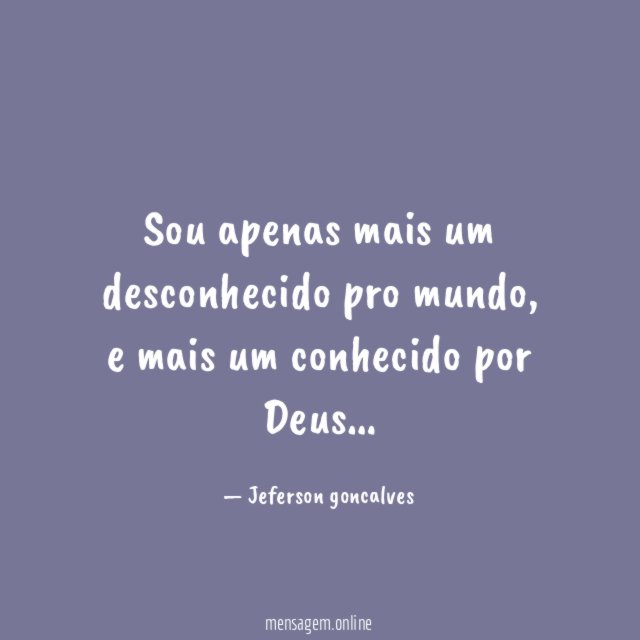 Sou apenas mais um desconhecido pro mundo, e mais um conhecido por Deus…