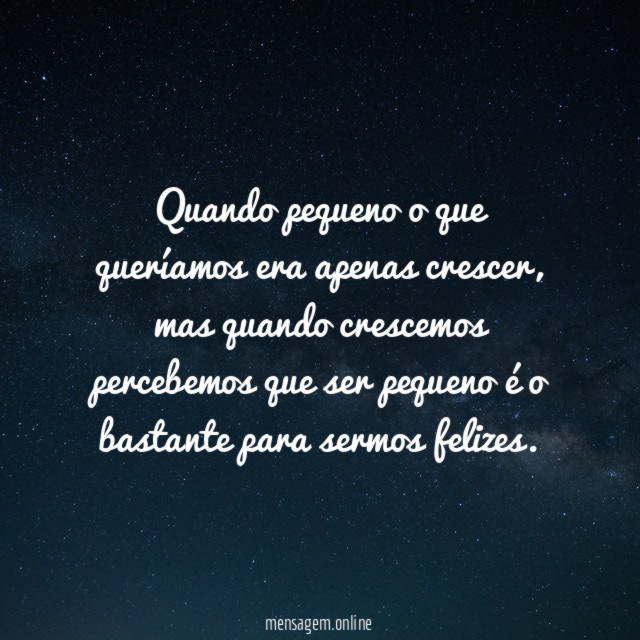 Quando pequeno o que queríamos era apenas crescer, mas quando crescemos percebemos que ser pequeno é o bastante para sermos felizes.