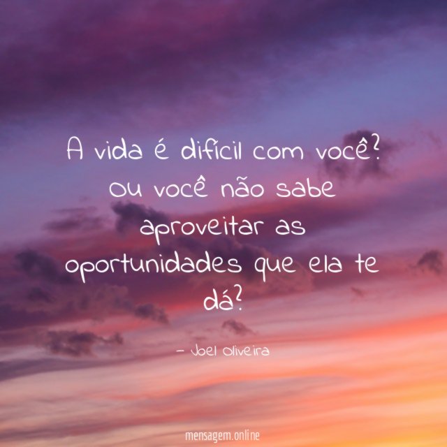 Ou você não sabe aproveitar as oportunidades que ela te dá?