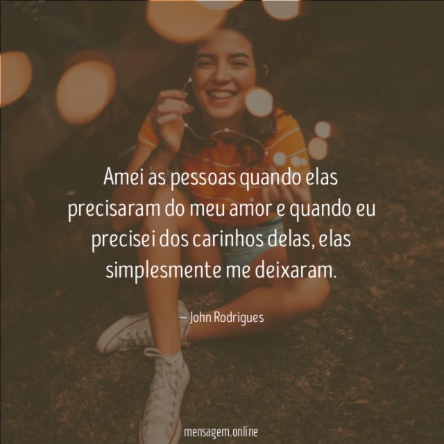 Amei as pessoas quando elas precisaram do meu amor e quando eu precisei dos carinhos delas, elas simplesmente me deixaram.