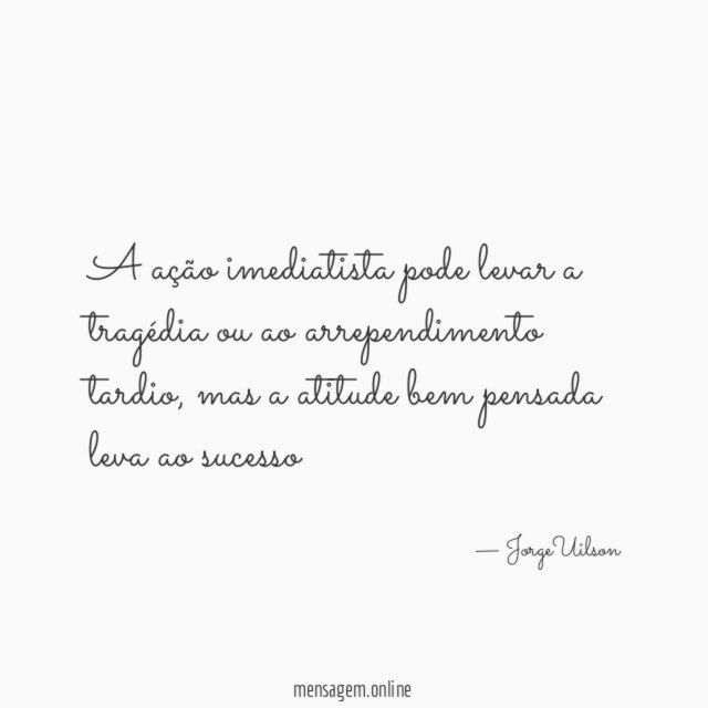 A ação imediatista pode levar a tragédia ou ao arrependimento tardio, mas a atitude bem pensada leva ao sucesso