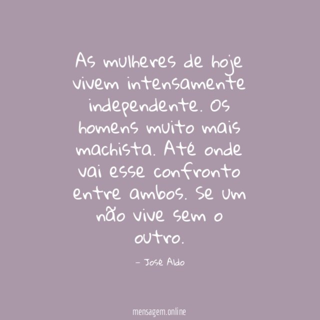 As mulheres de hoje vivem intensamente independente. Os homens muito mais machista. Até onde vai esse confronto entre ambos. Se um não vive sem o outro.