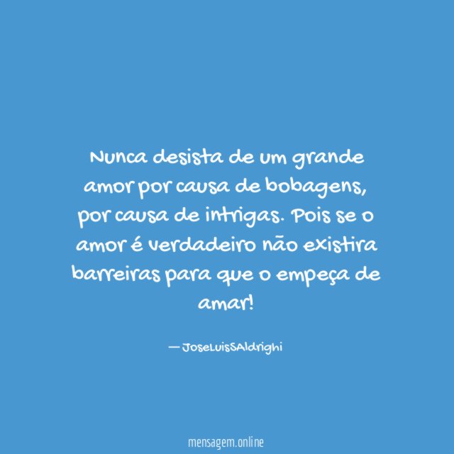 Nunca desista de um grande amor por causa de bobagens, por causa de intrigas. Pois se o amor é verdadeiro não existira barreiras para que o empeça de amar!
