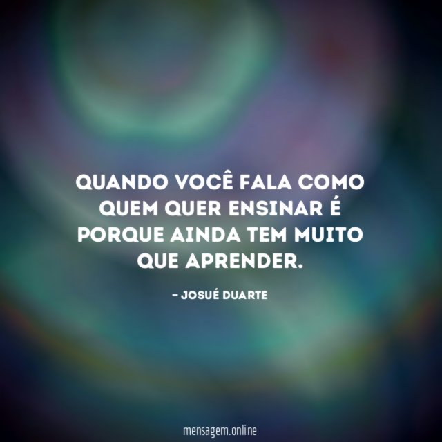 Quando você fala como quem quer ensinar é porque ainda tem muito que aprender.