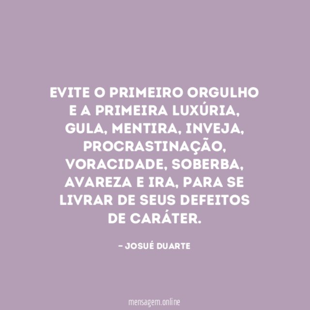 Evite o primeiro orgulho e a primeira luxúria, gula, mentira, inveja, procrastinação, voracidade, soberba, avareza e ira, para se livrar de seus defeitos de caráter.