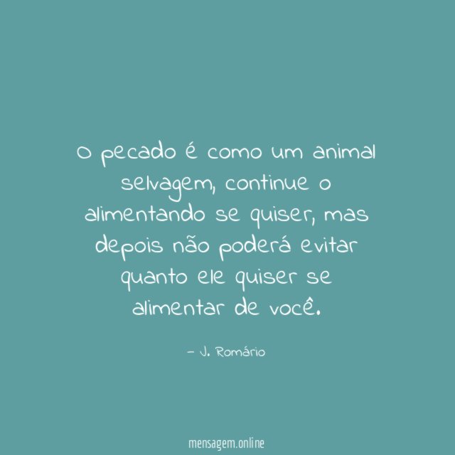 O pecado é como um animal selvagem, continue o alimentando se quiser, mas depois não poderá evitar quanto ele quiser se alimentar de você.