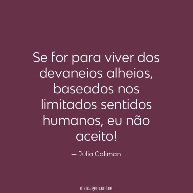 Se for para viver dos devaneios alheios, baseados nos limitados sentidos humanos, eu não aceito!