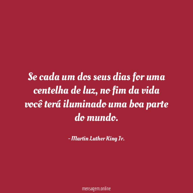 Se cada um dos seus dias for uma centelha de luz, no fim da vida você terá iluminado uma boa parte do mundo.